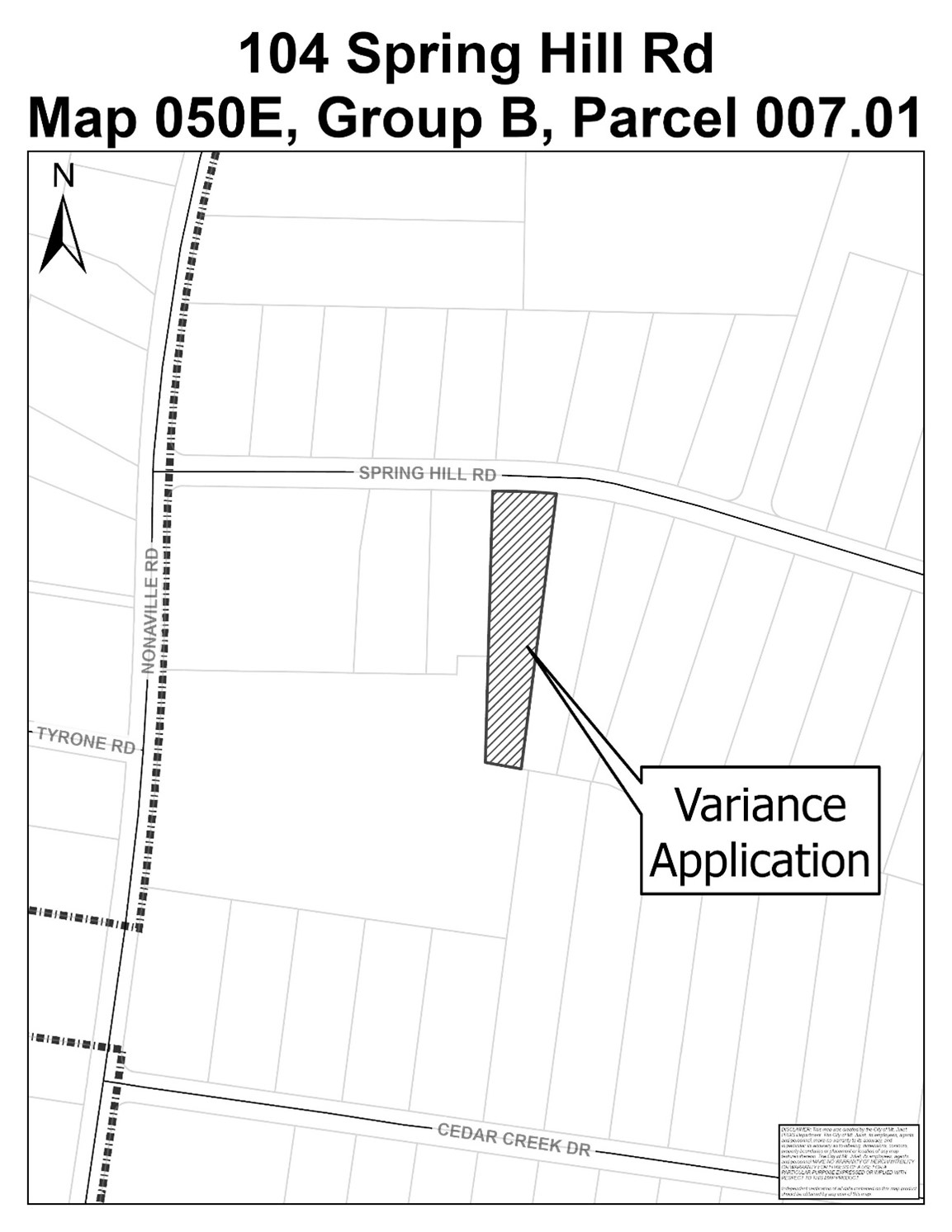 Review the Side Setbacks Zoning Variance Request for 104 Spring Hill Rd.
