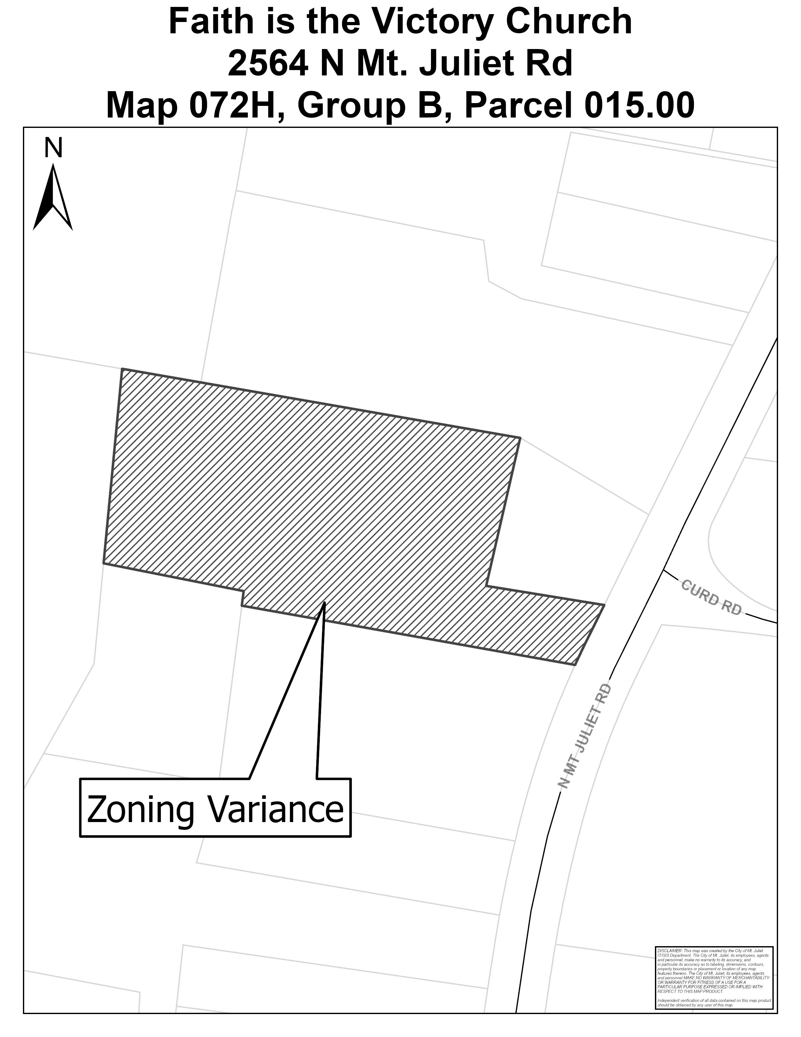 Review the Zoning Variance Request to exceed the minimum lot size requirements for a religious facility for Faith is the Victory Church of Mt. Juliet, located at 2564 N. Mt. Juliet Rd.
